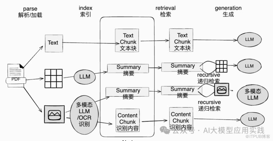 尽量把多模态文档中隐藏在图片、图表、表格中的知识“文本化”并进行向量存储后用于检索。在之前曾经较详细的介绍过相关的处理方法与工具: