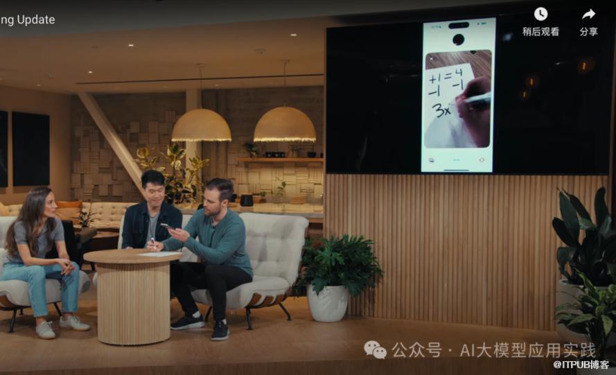 GPT-4o最重要的能力更新是在提供了“GPT-4 级别”的智能基础上,极大改进了在文本、语音与视觉方面的跨模态实时处理能力。现在,你可以像和人类助手一样与ChatGPT做更自然、轻松、多模态的交互,你可以和它实时语音聊天,可以和它视频对话,让它帮你解数学题和编程序,你可以随时打断它,它甚至会理解你的情绪,生成不同情感风格的语音来和你对话,需要的时候还可以唱歌给你听!OpenAI 工程师在现场演示了 GPT-4o 的实时语音对话。注意这个实时对话不是简单的语音识别+GPT+语音合成的缝合!而是ChatGPT直接理解你的语音并与你语音对话,全程几乎无明显的延迟,也就是GPT-4o现在天生就支持音频态的理解与生成。相信这个模型的放出将会对现有的语音智能相关的解决方案领域的形成冲击,交互式数字人、智能呼叫中心、个人语音助理等领域有望再次迎来技术升级,以解决现有的缝合方案在准确性、响应延迟、故障点等多方面的隐患与问题。现在你可以和ChatGPT实时视频对话,现场工程师通过视频给ChatGPT出了数学题,双方甚至通过实时语音对话对解题思路做了讨论!(当然,最后成功后,ChatGPT还会由衷的表现出了兴奋...)。工程师还在现场演示了与ChatGPT实时语音视频聊天的方式一起来做编程。这里可以看到ChatGPT未来会发布的一个PC上的类似于siri的客户端,你可以快速唤起ChatGPT,然后实时共享代码、与他讨论如何编程、截图发送要求他做分析。这种多模态的实时交互协作已经远远超出了现有的编程Copilot的能力,设想未来如果每个程序员配置这样的助手,效率会提升多少?现场最后还演示了基于ChatGPT音频理解的实时语言翻译能力,整个过程几乎零延迟。
