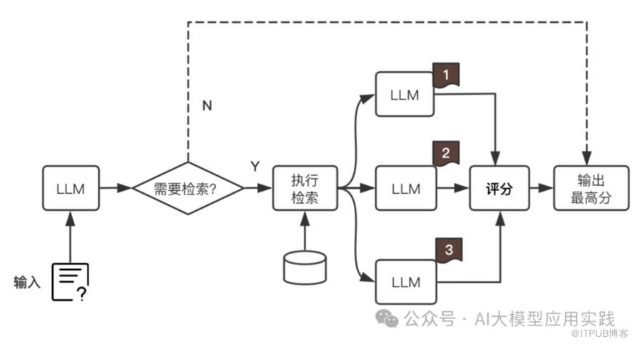 只在必要的时候才执行检索 借助指标与评分算法从多次LLM输出中选择最优答案 -