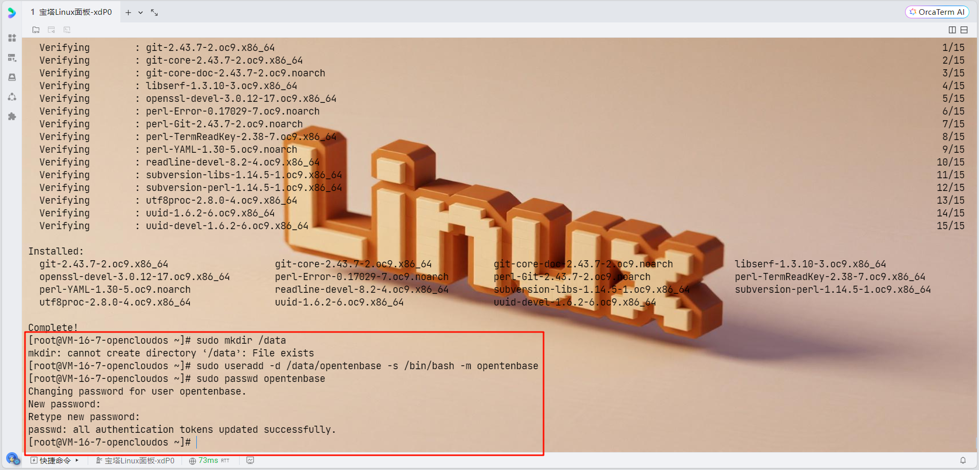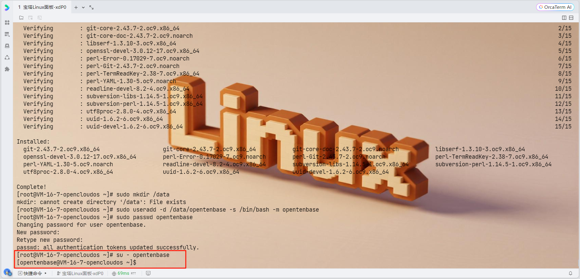 # 创建数据目录 sudo mkdir /data # 创建opentenbase用户 sudo useradd -d /data/opentenbase -s /bin/bash -m opentenbase # 设置密码 sudo passwd opentenbase