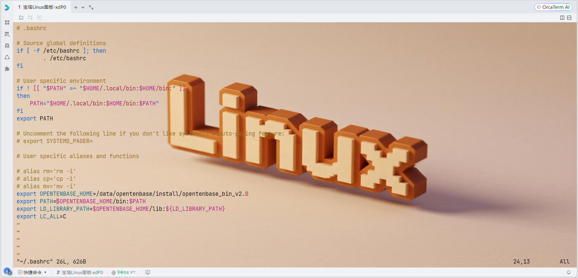 # 编辑bashrc文件