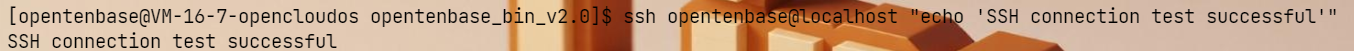 # 测试SSH连接是否正常 ssh opentenbase@localhost "echo 'SSH connection test successful'"