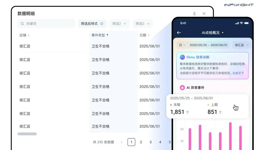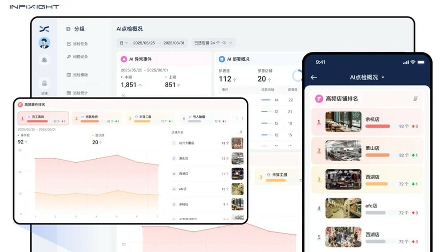 传统巡店最大的痛点,是问题藏在报表堆里 。督导提交的巡检打分表格、门店自检照片、整改记录分散在各处,管理者如同盲人摸象。而 AI 巡检系统 的智能诊断正在改变这一切, 曾经需要 3 天整理的数据报告,如今打开电脑 10 秒便知要害。