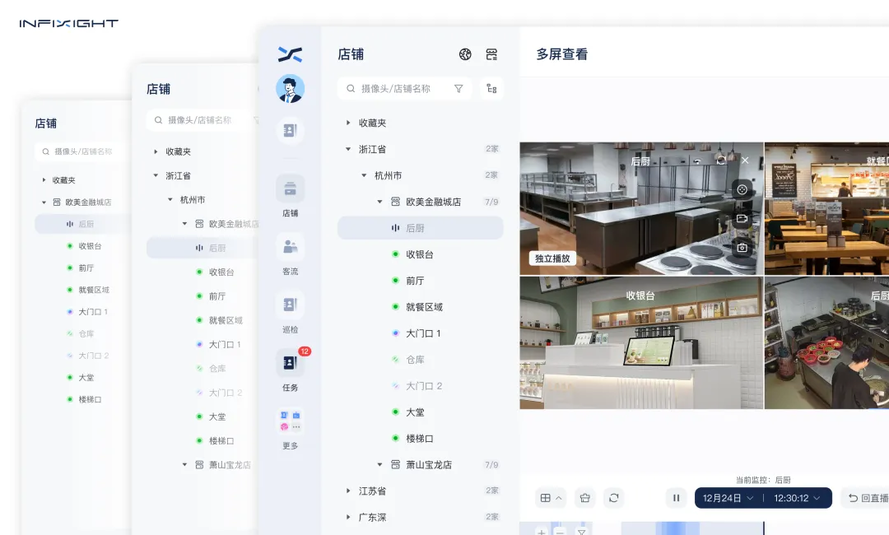 通过视频监控,总部无需专门派员工出差去门店现场查看, 通过监控即可远程「云查店」,且权限分层清晰明了:店员只能查看本店数据,区域经理掌握辖区动态,总部则统揽全局,杜绝信息越权。