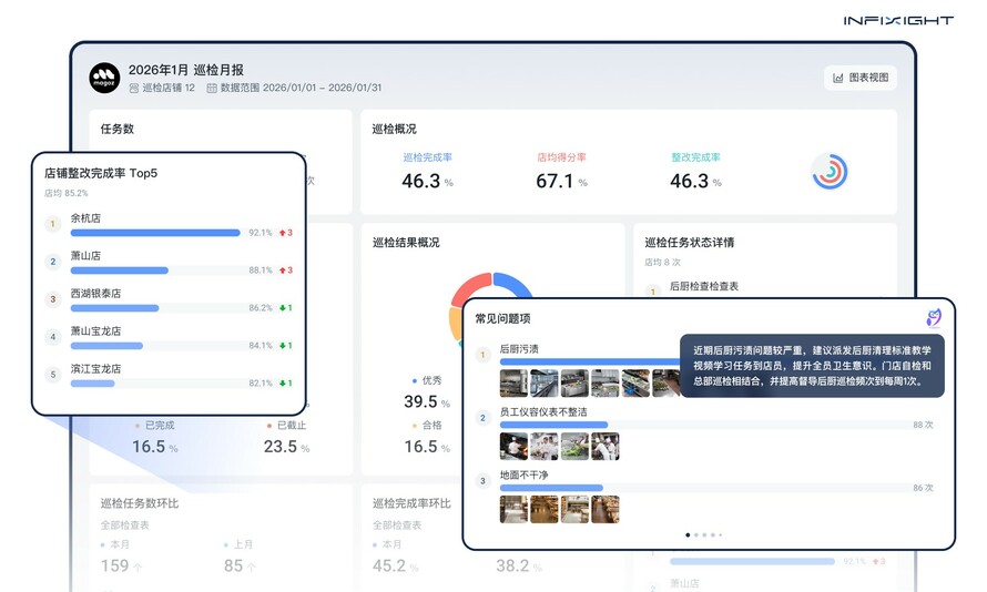 如果你正为品牌标准落地、门店一致性等问题头疼,无论是数十家,或是成百上千家,欢迎了解 InfiSight 智睿视界 AI 协同巡店 Pro,看看 AI 如何让巡店 全覆盖、低成本、可量化。