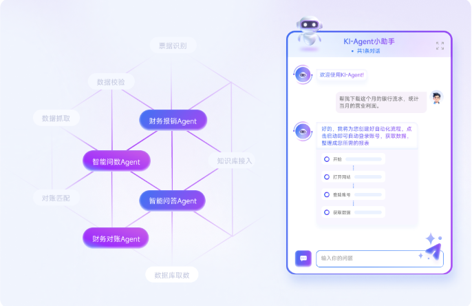 阿里云的 智能财务管家 主打云端集成与多模型分析,擅长大数据洞察;来也科技聚焦场景化 RPA+AI 融合;而金智维的 Ki-AgentS 则更强调在企业复杂流程中的多智能体协同能力,使得财务数据从收集、处理到分析均能形成闭环联动。不同路线代表着不同阶段的智能化深度。