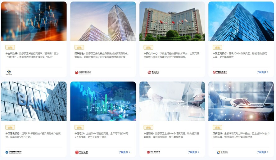 与其他厂商不同,金智维并非埋头研究技术,而是先从创始人廖万里最熟悉的金融场景入手,切身解决客户的痛点。这种点对点的解决方案,使得金智维 RPA产品一经推出就取得了巨大的成果,并迅速推广到了证券行业,使得金智维在金融行业领域累积了丰富的经验和资源。这种技术和行业的先发优势, 使得金智维在建设银行招投标时,具有天然的沟通优势和理解基础。