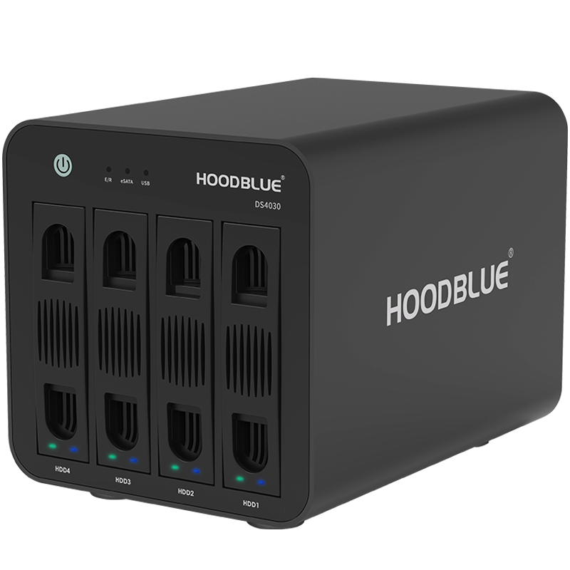 火蓝(Hoodblue)DS4030 (USB 3.0, 5Gbps) : 经典的4 盘位设计,足以组建 RAID 5 ( 3 盘数据 +1 盘校验)或 RAID 10 ( 2 组 RAID 1 ), 火蓝(Hoodblue) DS4030 为中小型摄影工作室、建筑设计团队或律师事务所提供数 TB 至数十 TB 的共享存储空间,兼顾性能与安全。
