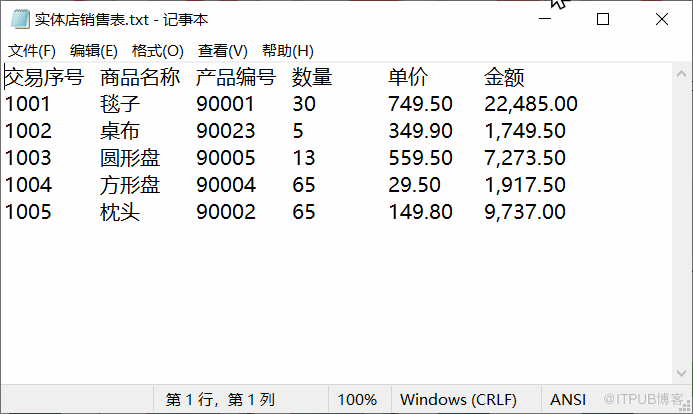 如上图所示,实体店销售人员手工创建“实体店销售表.xlsx”,也可以由其它销售管理系统导出这个文件,并将这个文件存放在指定的文件夹。注意Excel工作表有且只有第一行为字段名,字段不能重名。
