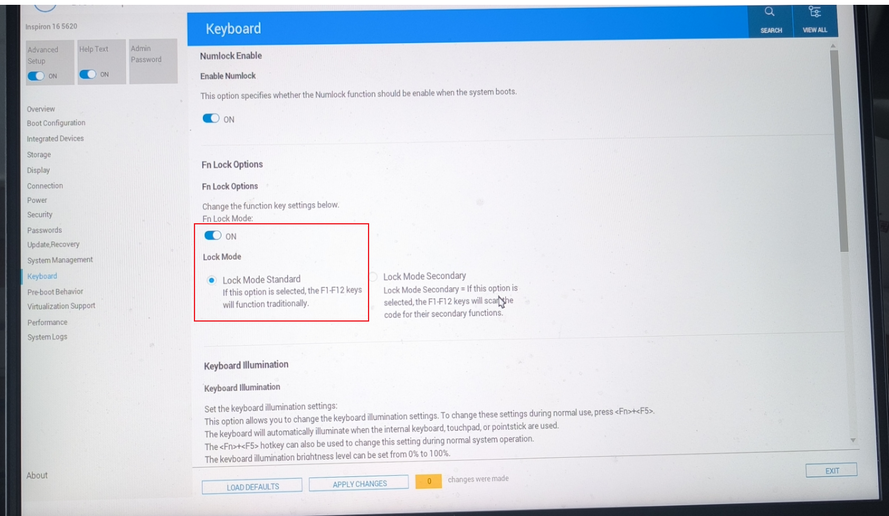 3.把fn lock mode改为 standard模式,就是(fn+F1为关闭/打开声音,f1为帮助键),改为Secondary就是( fn+F1为帮助,f1为打开/关闭声音)