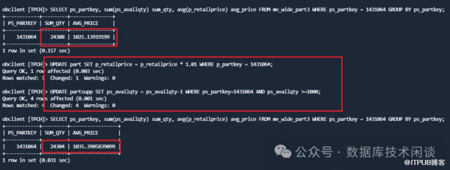 可以看到,每更新一笔记录,物化视图会有两笔记录(一笔O表示老记录,一笔N表示新记录)。